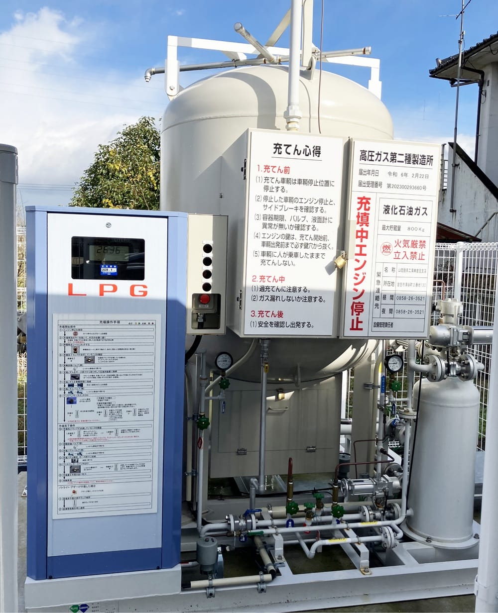 JGEさまよりご提案いただき、寄附よりも運営面でお手伝いしようと決めました。2ヵ月に1度、当社社員が設備目視点検及び残量確認を行い、年間充填回数は2~3回程度です。日の丸ハイヤーさまへは充填方法を3~4回にわたり指導しました。