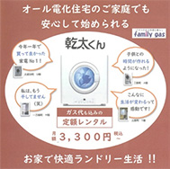 最近、「オール電化住宅だけど、衣類乾燥機だけはガスを使いたい」というお問い合わせが急増しています 。ファミリーガスの導入実績のうち、実に半数以上がオール電化住宅です 。