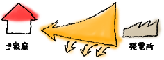 遠くの発電所から家まで届く電気は、エネルギーに一部ロスが。