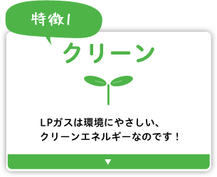 LPガスは石油などの化石エネルギーのなかでもCO2の排出量が少ないため、天然ガスとともにクリーンなエネルギーと位置付けられています。