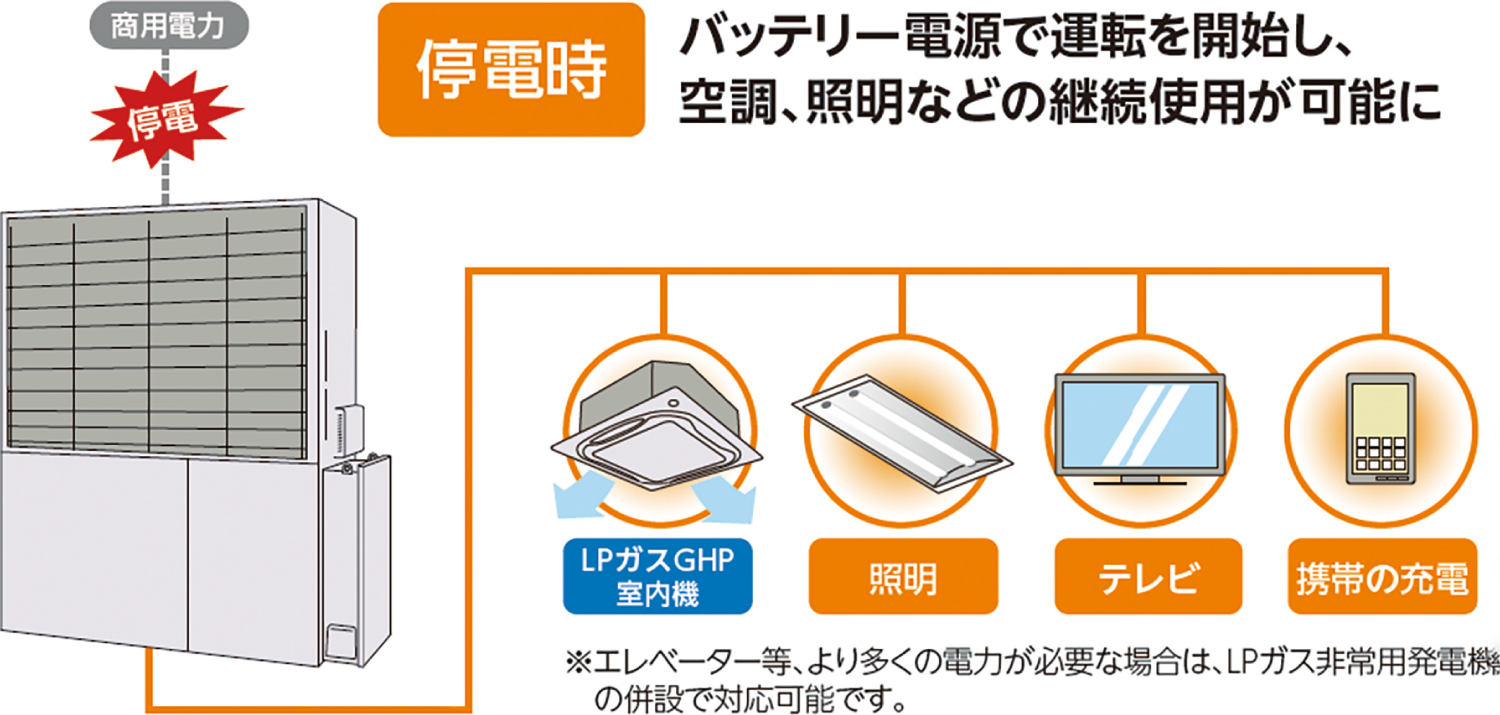 避難所等へのLPガス空調や発電設備の導入を促進し、被災時においても快適な避難生活環境が確保できるよう貢献する。