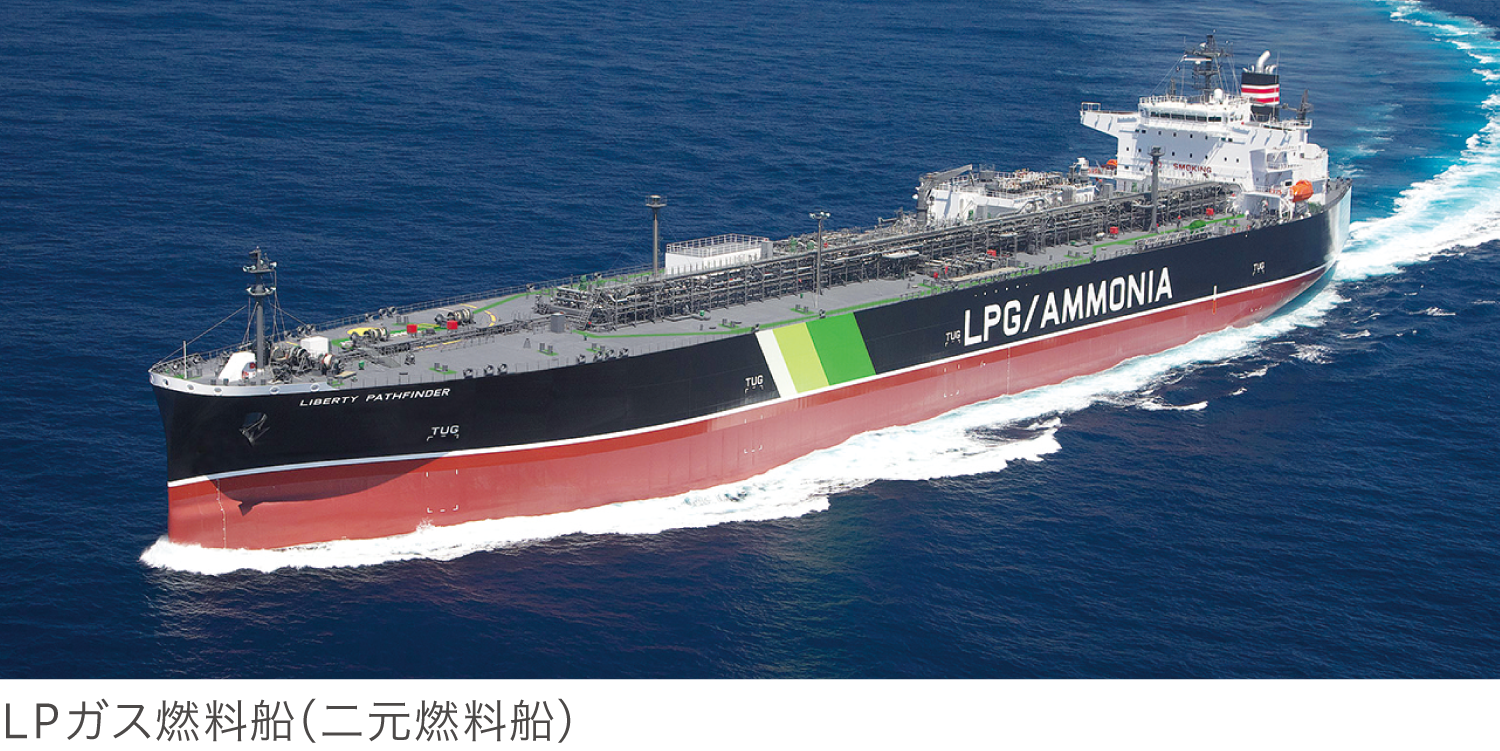 グリーンLPガスの開発及び輸入を進め、2030年代半ばの国内実用化を目指す。
