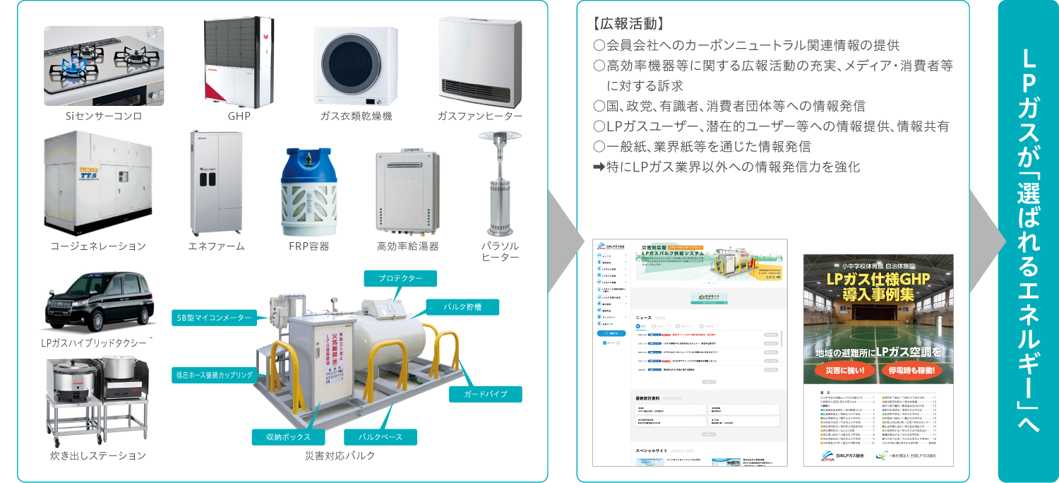 LPガスの魅力と価値を広く伝えるとともに、2050年カーボンニュートラル実現に貢献してまいります。