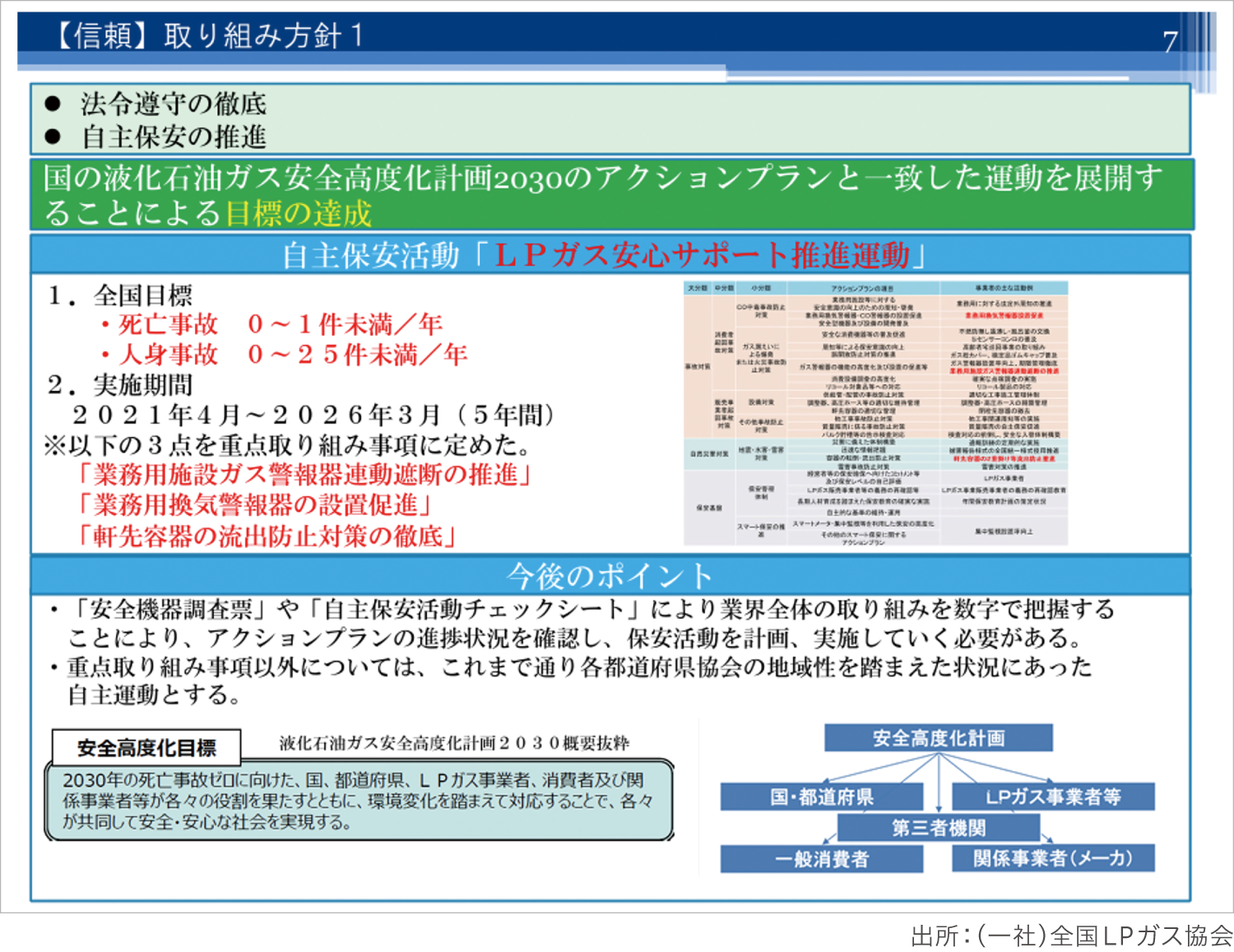 ○全国LPガス協会による、国の『液化石油ガス安全高度化計画2030』と一致した自主保安運動の展開