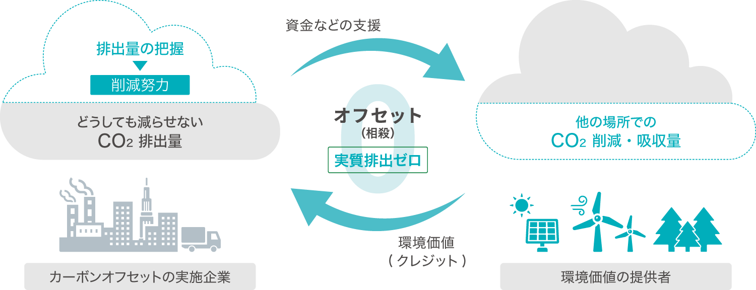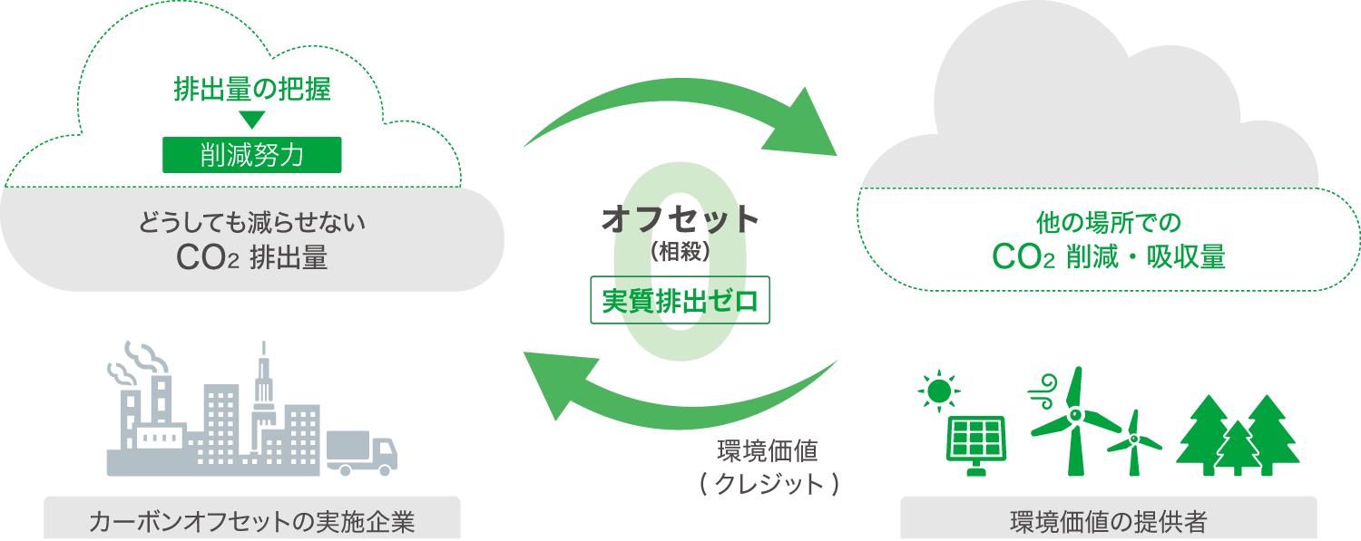 カーボンクレジットによるCO2オフセット(相殺)のイメージ
