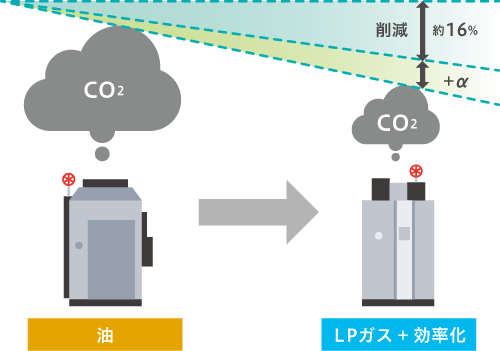 ◯油➡ガスへ切り替えるだけで約16%のCO2が削減