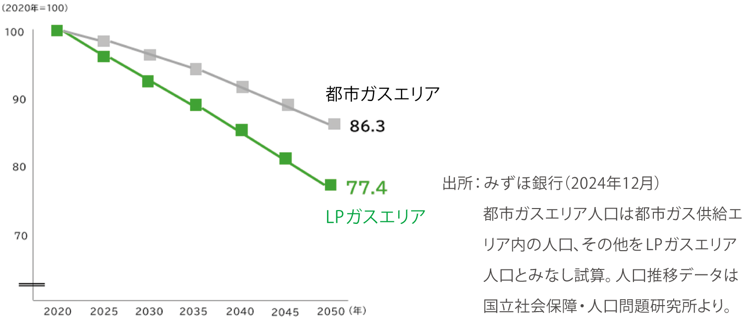LPガスが支える地域の人口減少・少子高齢化が予想される中、将来にわたりお客様にLPガスを届けられる持続可能な産業として必要な取り組みを、業界一丸となって取り組む。